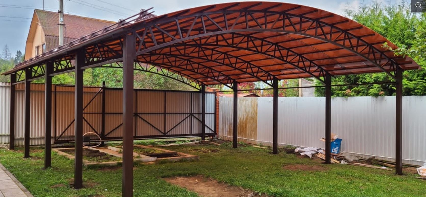 Правильно подобранный материал обеспечивает устойчивость конструкции к ветровым и снеговым нагрузкам. Важно также учитывать форму навеса — арочную, односкатную или двускатную. Арочные модели особенно популярны для автомобилей, так как не задерживают осадки и гармонично вписываются в ландшафт.